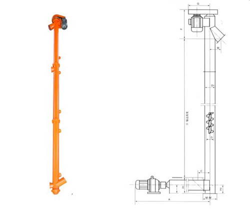 摩擦力、以及物料自重引起的沿螺旋向下滑的分力,將物料向上提升的輸送機(jī)械。結(jié)構(gòu)簡單,占用空間小。 |